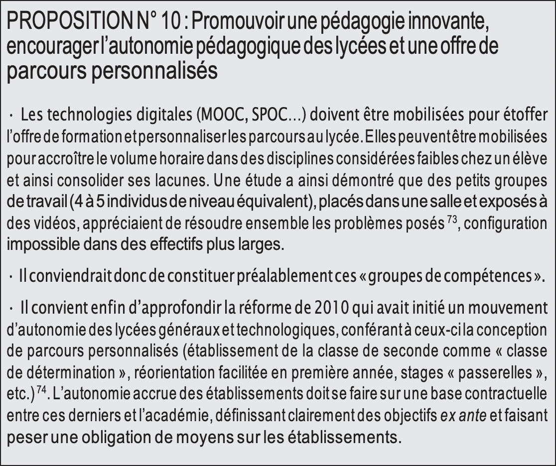 Parallèlement à la détection et au fléchage des « élèves à fort potentiel », le lycée doit être un territoire d’innovation pédagogique en matière de correction des inégalités. Il faut pour cela aller plus loin dans la personnalisation des parcours scolaires.