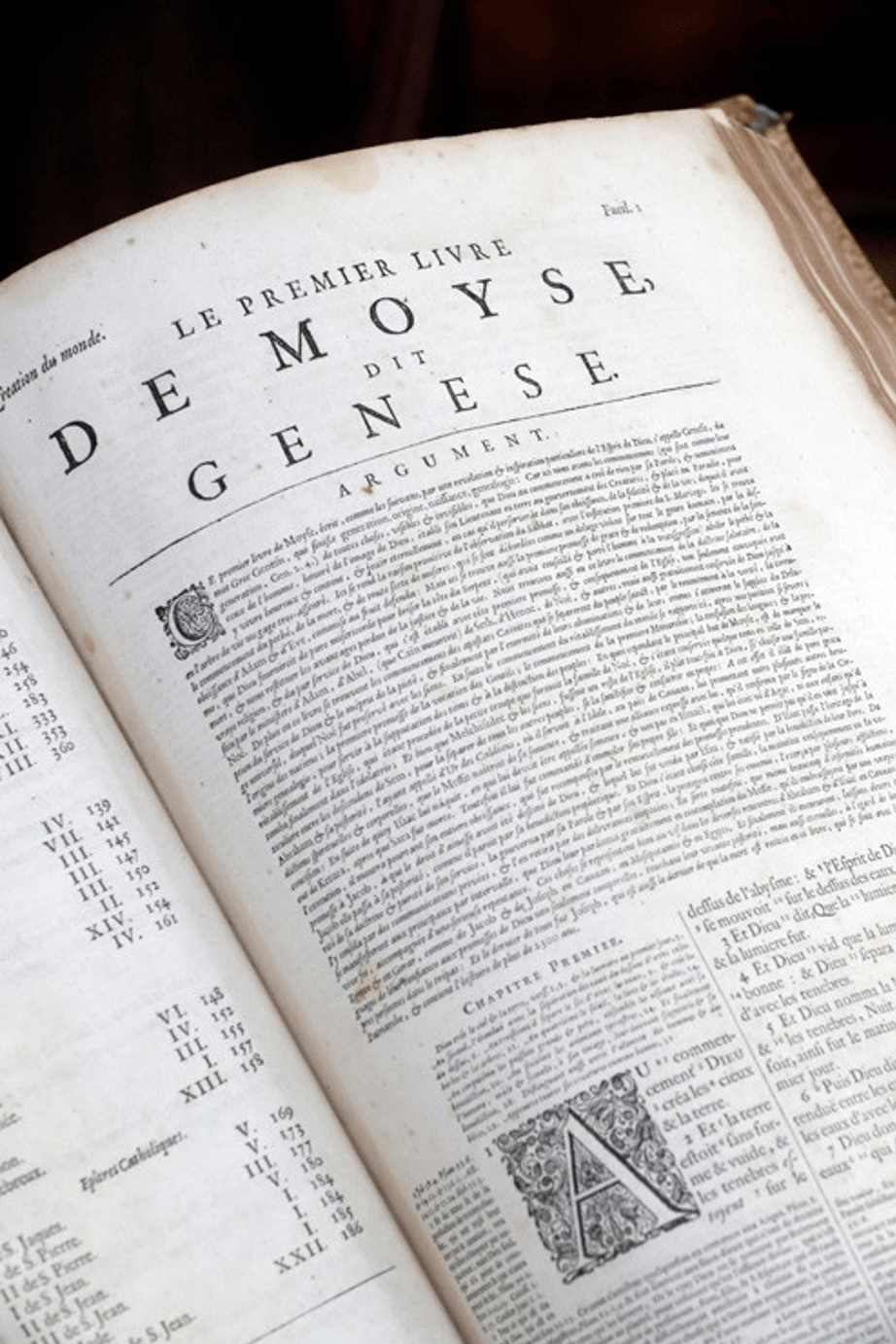 Vieille Bible en français, 1669. Ancien Testament. Pentateuque ou les Cinq Livres de Moïse. La genèse. @Godong / Alamy
