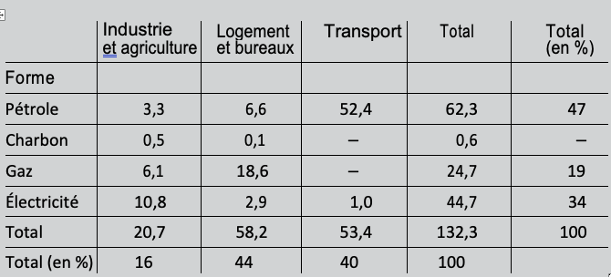 Formes d’énergie et secteurs de consommation