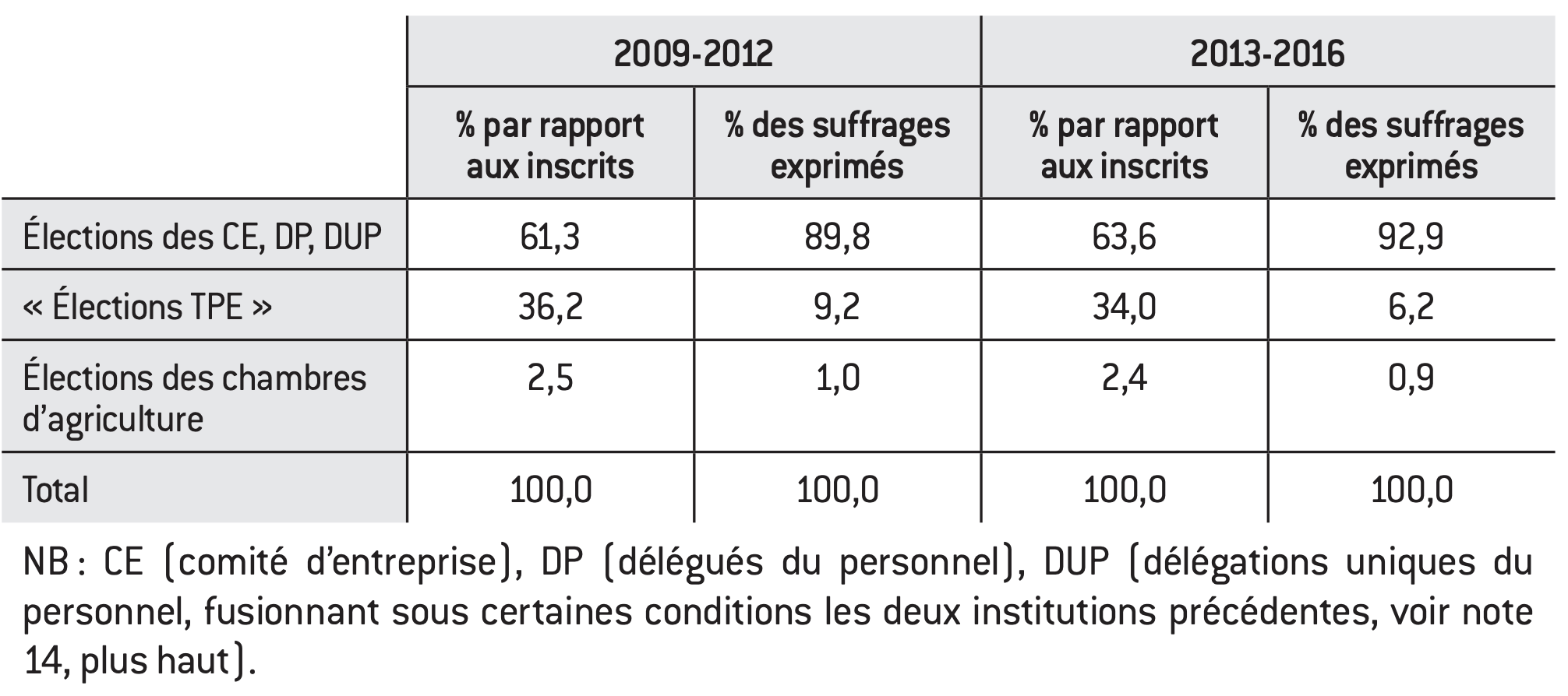Voir Tristan Haute, « Participer ou non aux scrutins professionnels : quelles inégalités ? », in Anne Fretel, Anne Bory, Sylvie Célérier et Florence Jany-Catrice (dir.), Cahiers du Cirtes, « Politiques sociales en mutation : quelles opportunités et quels risques pour l’État social ? », Lille, 8-9 septembre 2016, hors-série n° 6, actes des XXXVIes Journées de l’Association d’économie sociale, Presses universitaires de Louvain, 2017.
