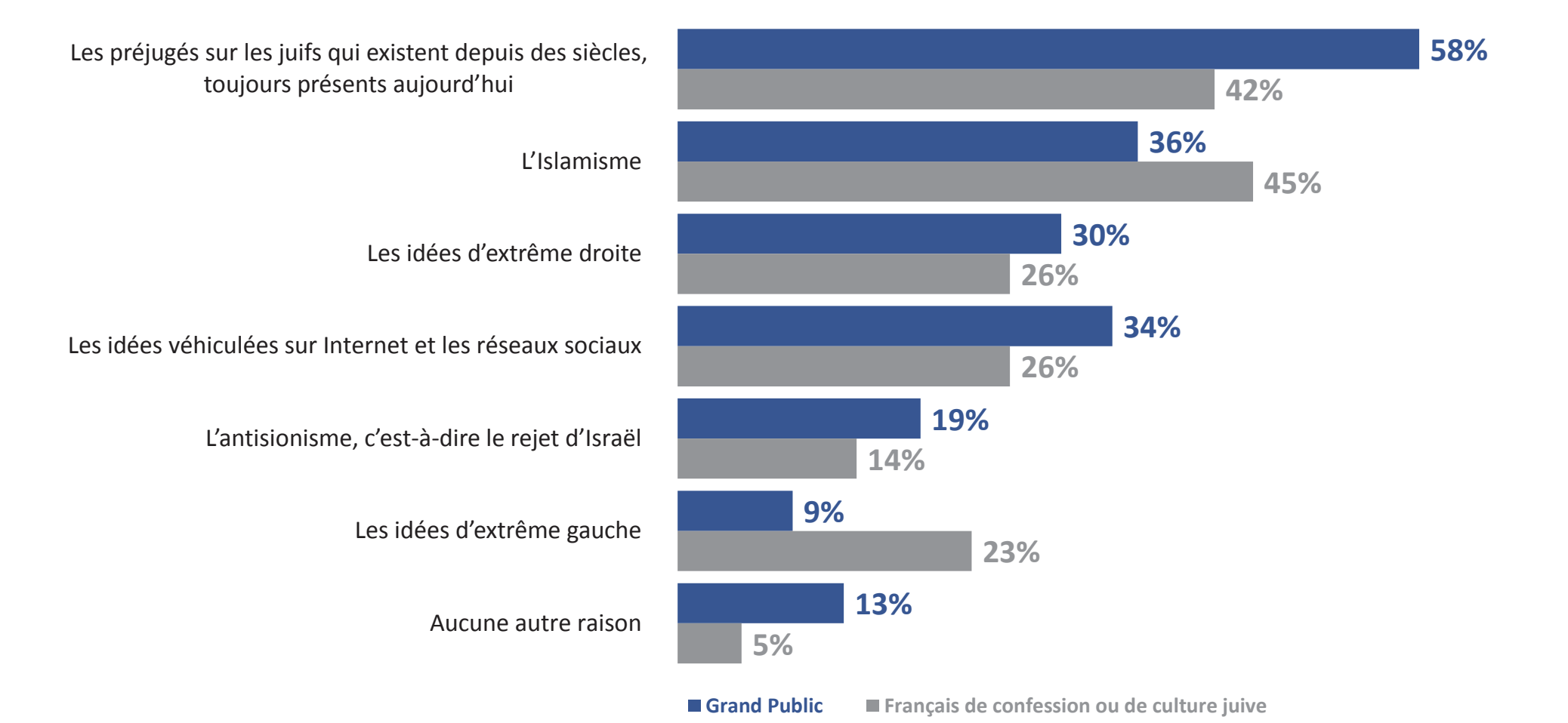 L’opinion du grand public et des Français de confession ou de culture juive diverge concernant les causes de l’antisémitisme