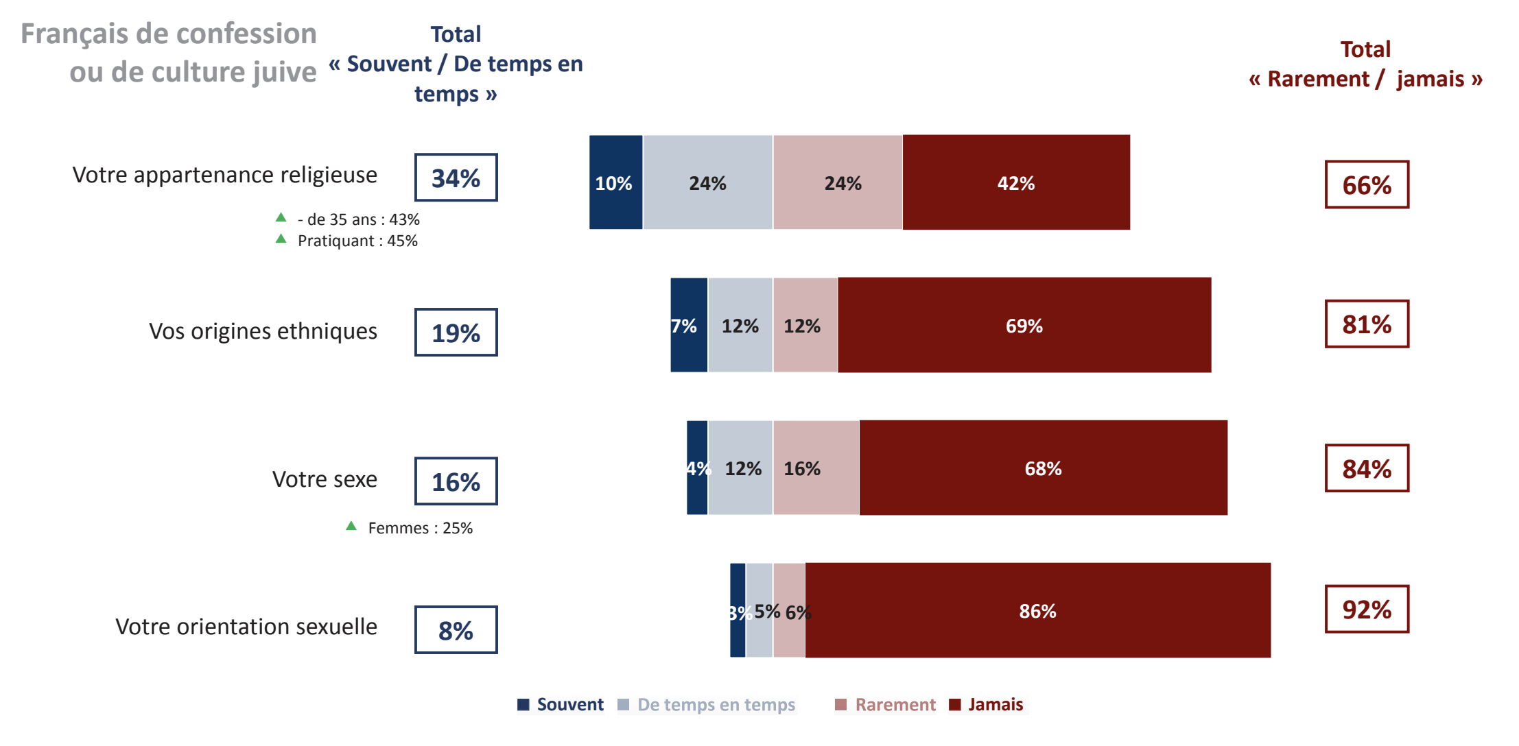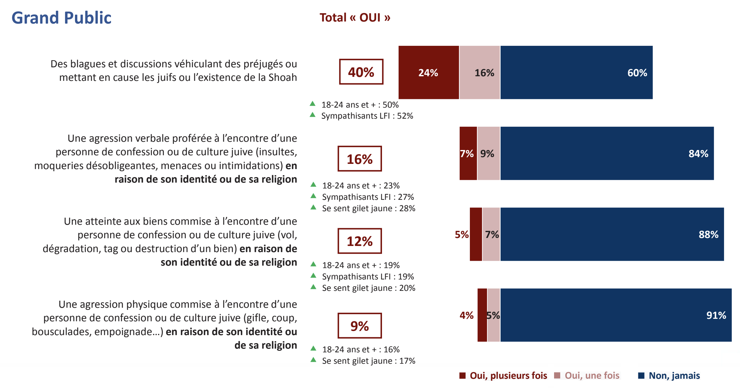 Question : Au cours de votre vie, avez-vous, en raison de votre appartenance à la communauté juive, fait personnellement l’objet…?