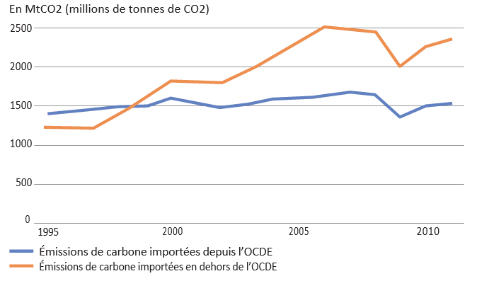Émissions de carbone importées dans les pays membres de l’OCDE (1995-2011)