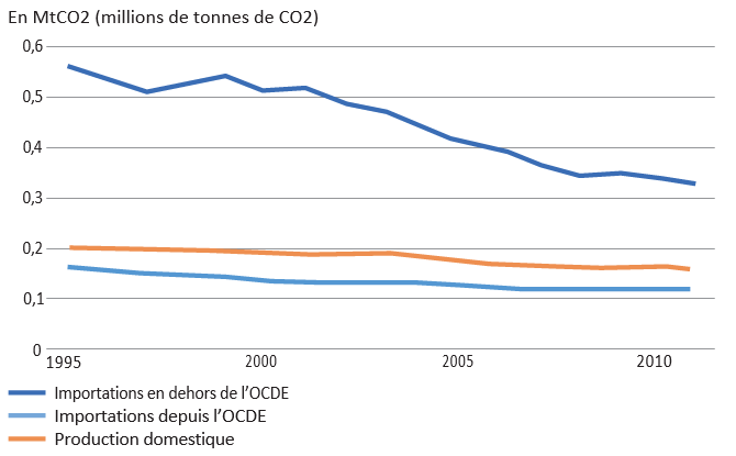 De fait, dans les pays de l’OCDE, les émissions de carbone contenues dans les importations depuis les pays hors de la zone OCDE ont progressé beaucoup plus que les émissions de carbone contenues dans les importations d’autres pays de l’OCDE.