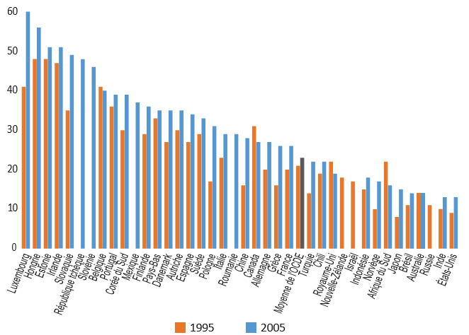 Intensité carbone des importations dans les pays de l’OCDE (1995-2011)
