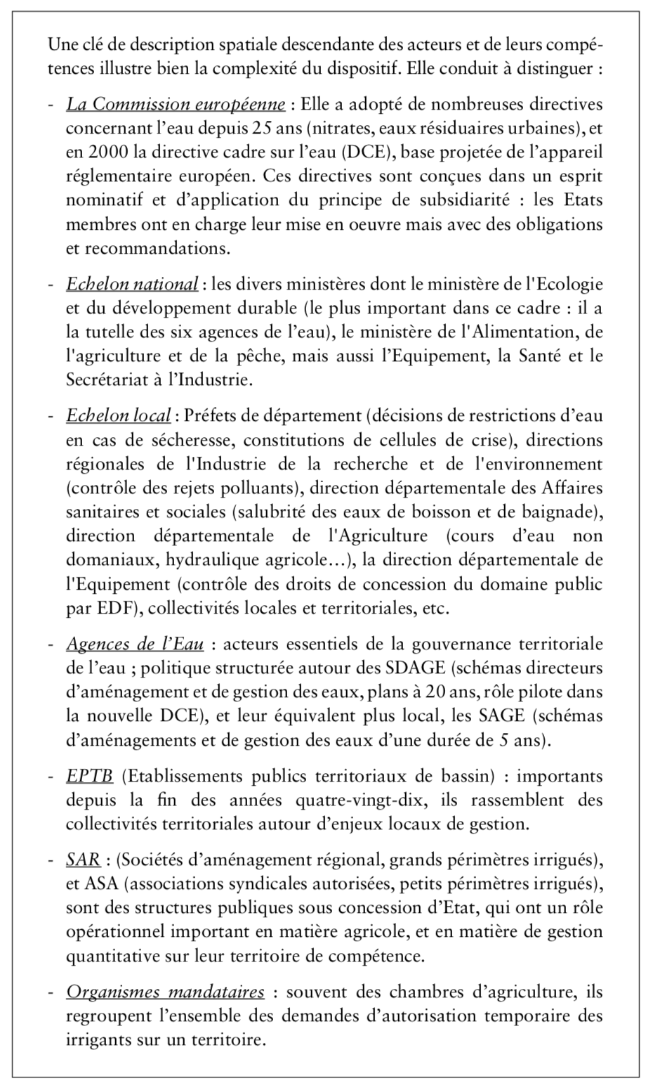 Encadré 1 : la grande diversité des acteurs de l’eau