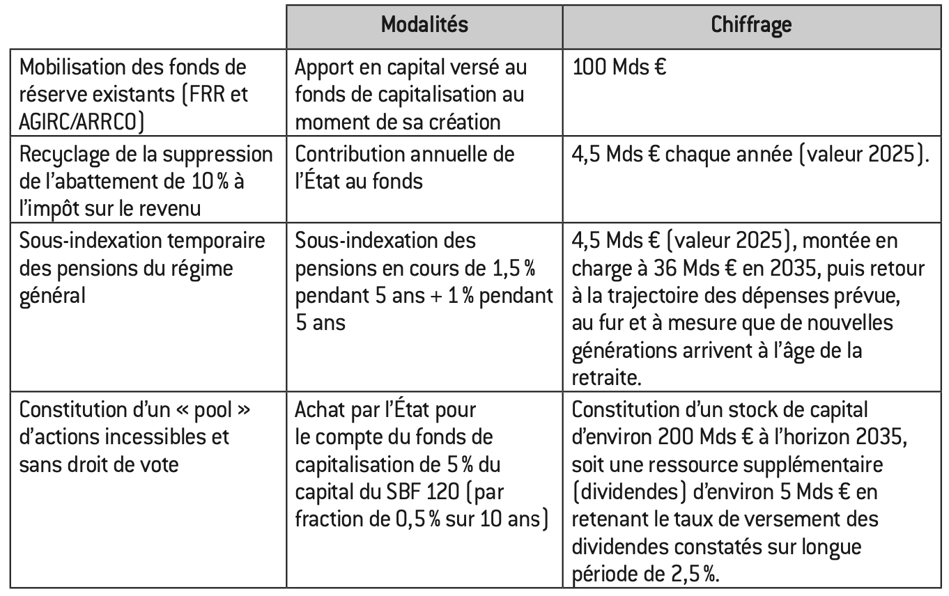 Mobiliser de nouvelles ressources pour aider à enclencher la constitution du fonds et accélérer la baisse des cotisations par répartition