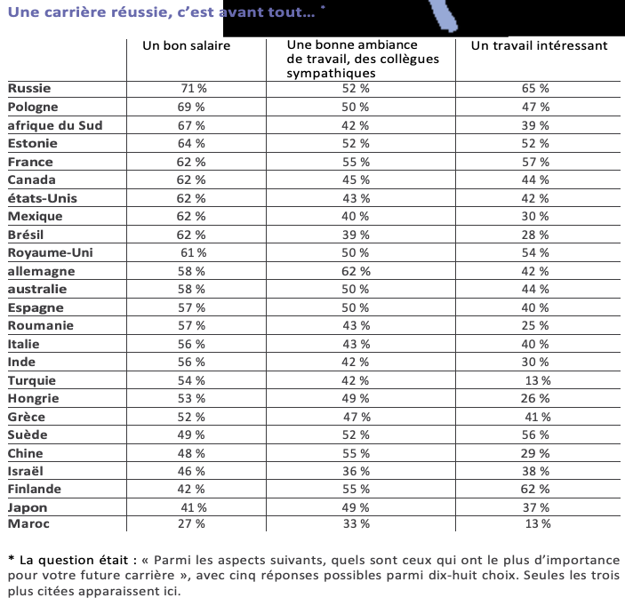 qu’ils sont « certains d’avoir un bon travail dans l’avenir », mais ils ne sont plus que 65% en Europe et… 49% en France.