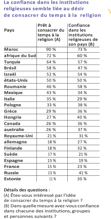 Cette demande de spiritualité est partout dans le monde moins importante chez les 16-29 ans que chez les 30-50 ans, à l’exception de la Suède (32% chez les jeunes, 27% chez leurs aînés) et du Royaume-Uni (36% chez les jeunes, 33% chez leurs aînés).