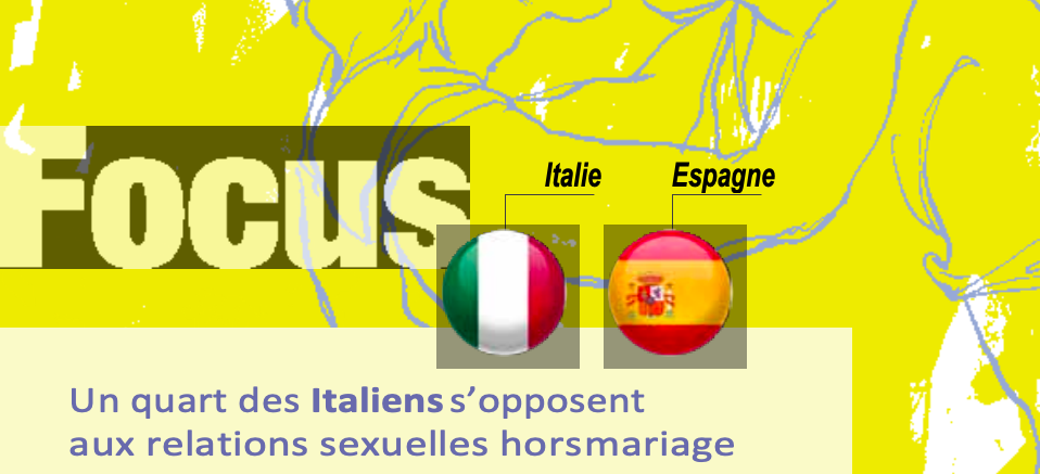 Pour une fraction non négligeable de la jeunesse, les relations sexuelles hors mariage ne sont pas acceptables : 20% des Européens les désapprouvent. En dehors de l’Europe, cette réprobation est plus forte parmi les Américains (40%), les Sud-Africains (60%), les Indiens (74%) ou encore les Marocains (85%). Sur ce plan, les jeunes sont plus conservateurs que ce que l’on pense généralement, les jeunesses les plus permissives se trouvant en Europe. Ce sont les Français (10%) et les Estoniens (12%) qui sont les moins nombreux à considérer que les relations sexuelles hors mariage ne devraient pas être autorisées.