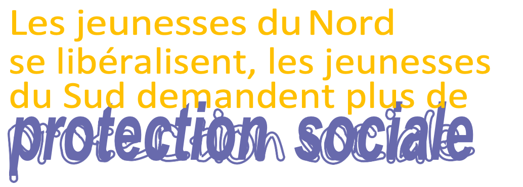 D’une manière générale, on note des différences importantes entre les 16-29 ans et les 30-50 ans : 20 % des 16-29 ans disent être fiers des riches de leur pays, contre 9% des 30-50 ans : 23% des 16-29 ans préfèrent payer moins d’impôts en contrepartie d’une protection sociale diminuée (contre 15% des 30-50 ans). En revanche, les jeunes sont plus nombreux (67%) que leurs aînés (58%) à revendiquer le droit de refuser un emploi qui ne correspondrait pas à leurs qualifications sans perdre pour autant le bénéfice des allocations de chômage.