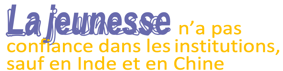 Concernant le système judiciaire, la défiance des jeunes est plus forte encore : les plus confiants restent les Indiens (74%), les Israéliens (71%) et les Chinois (64%), alors que les Mexicains (19%), les Russes (29%) et les jeunes d’Europe du Sud se distinguent par un très faible niveau de confiance dans leurs institutions judiciaires (Italie 28%, Espagne 30%, Grèce 32%).