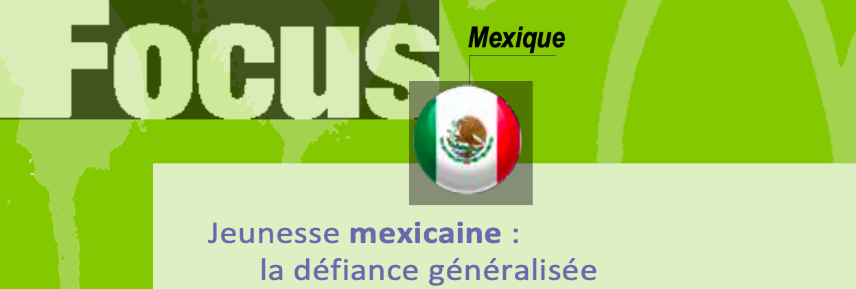 Le Mexique se classe tristement parmi les dix premiers pays du monde pour son taux d’homicides, directement lié à la guerre entre narcotrafiquants. Sur les 40 morts journaliers, la majorité est âgée de moins de 25 ans. Ces chiffres expliquent sans doute en partie le niveau de confiance très faible que les jeunes Mexicains accordent à leurs institutions.