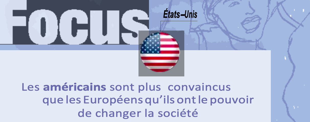 S’agissant de leurs concitoyens, les Américains sont convaincus qu’ils ont la possibilité de choisir leur propre vie (86%). S’agissant d’eux-mêmes, les Américains sont tout aussi nombreux (86%) à penser qu’ils peuvent décider de leur vie, opinion moins répandue dans la jeunesse européenne (79%) mais tout aussi répandue parmi les Chinois (83%), les Brésiliens (84%) ou les Indiens (90%). Invités à définir leur société idéale, les jeunes Américains sont plus nombreux (59%) que les Européens (49%) à insister sur la stabilité et la tradition plutôt que sur le changement. Un jeune Européen sur deux (50%) déclare préférer le changement à la stabilité, contre 41% des Américains.