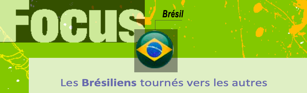 Les jeunes Brésiliens se caractérisent par une attention particulière portée aux autres. Avoir un travail utile à la société est important pour un jeune sur trois. Aider ceux qui en ont besoin en leur consacrant du temps ou de l’argent suscite un fort engouement (81%). L’idée que les plus pauvres doivent pouvoir bénéficier de soins de santé gratuits y est unanimement partagée (94%), tandis que l’on trouve des chiffres moindres en Europe (85%) et aux États-Unis (64%).