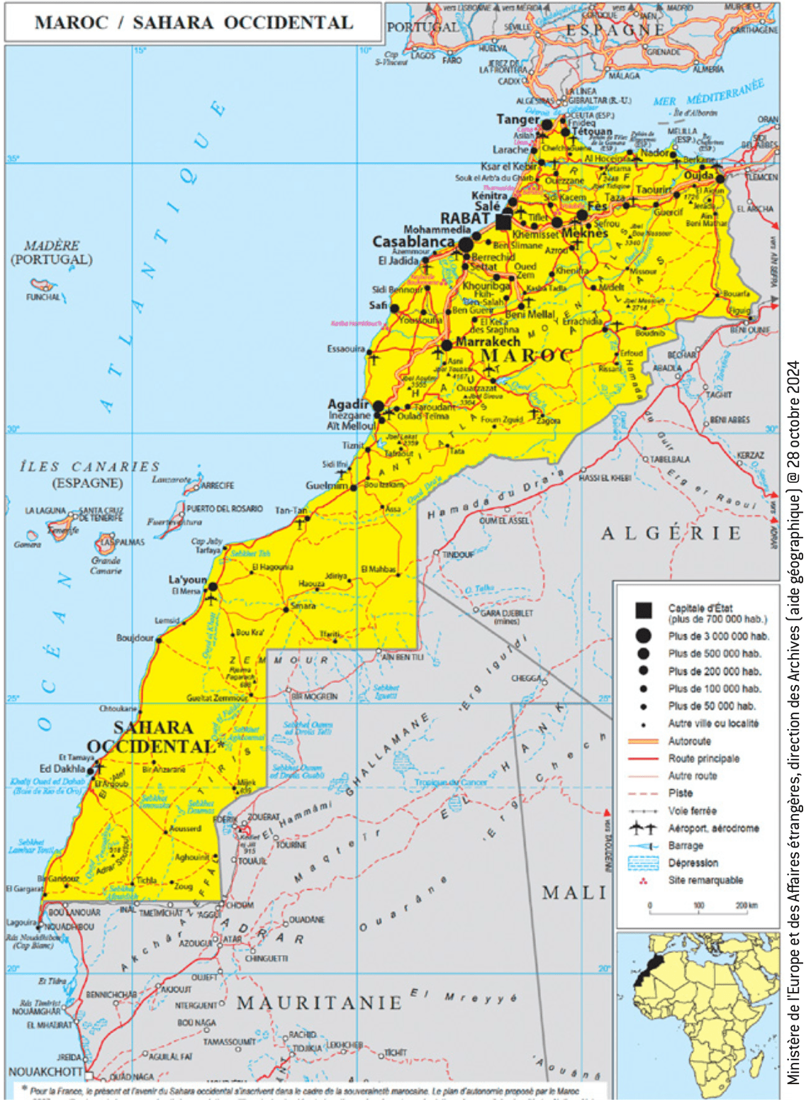 Carte du Maroc figurant depuis octobre 2024 sur le site officiel du ministère de l’Europe et des Affaires étrangères français