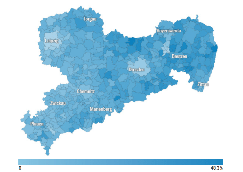 En Saxe comme au Brandebourg, l’AfD est forte dans les campagnes en cours de désertification et dans les zones déprimées économiquement, ainsi qu’à la frontière avec la République tchèque.