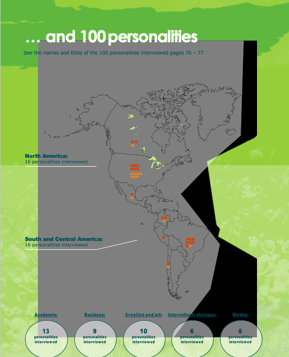 At the same time we asked 100 prominent people with an intellectual or professional commitment at the global level to let us share their vision of the issues linking the environment, development and governance with a view to preparing the ground together for the Rio+20 Conference.