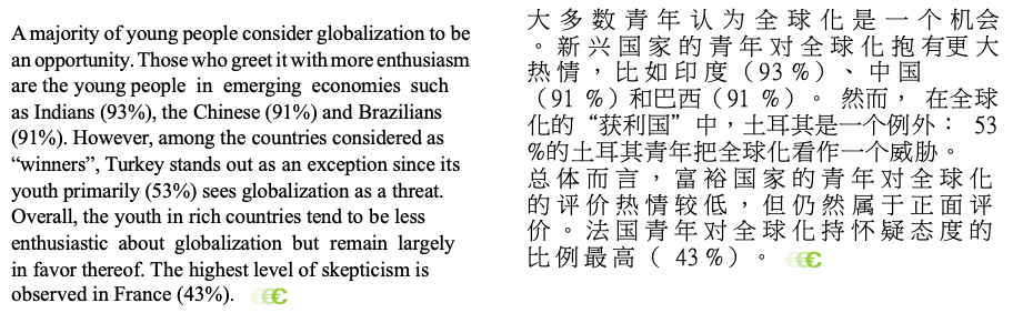 The objective of the study was to piece together representative samples in terms of age, gender or geographic region in each country. However, we must admit that the samples taken in emerging countries mainly represent a wealthier segment of the population. This particularly applies to the young people who took the survey online. In these countries the respondents are more likely to belong to the social classes that have the most contact with globalisation.