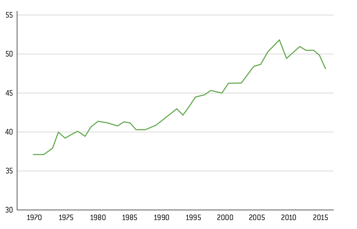 Selon une récente étude internationale, si à l’échelle de l’Union européenne une nette majorité (59%) de citoyens perçoivent la globalisation comme une opportunité, seuls 44% des Français abondent dans ce sens 2. L’opinion française vis-à-vis de la mondialisation s’exprime également par le sentiment très fréquent selon lequel elle renforcerait les inégalités sociales.