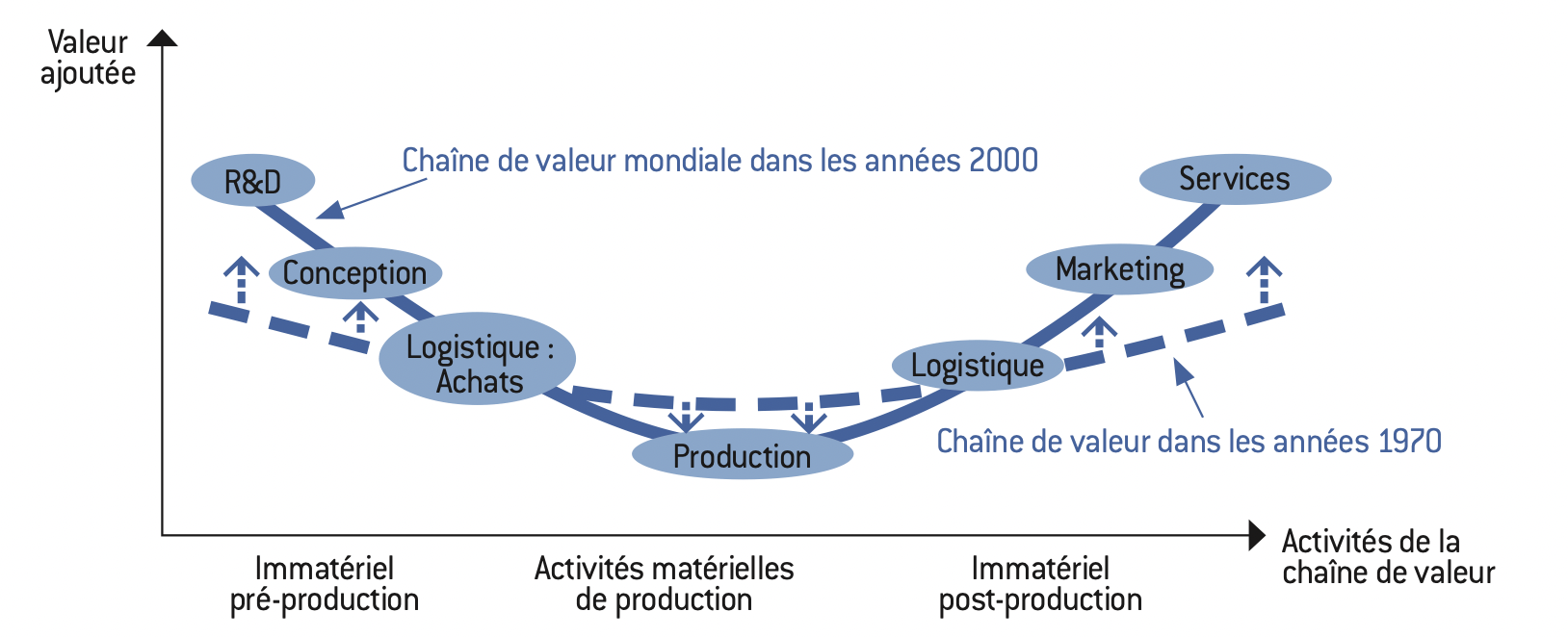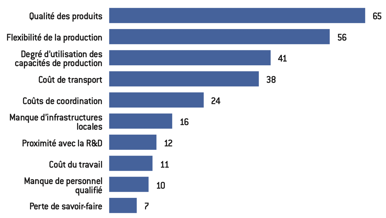 - de la complexité de la chaîne globale de valeur : si la chaîne est très longue, le risque est qu’une relocalisation implique que l’entreprise doive déconstruire la totalité de sa chaîne de valeur, établie à l’échelle mondiale (voir encadré plus bas) ;