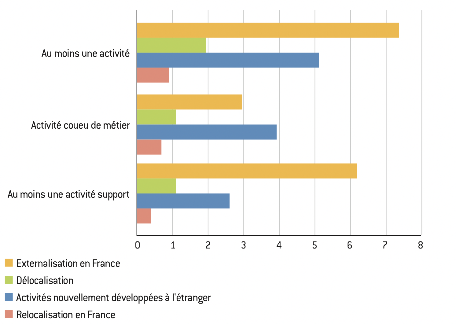Idée 10 : Quelle que soit l’ampleur de la politique menée, il est illusoire d’espérer un mouvement massif de relocalisations, dans lamesure où les entreprises françaises ont peu délocalisé.