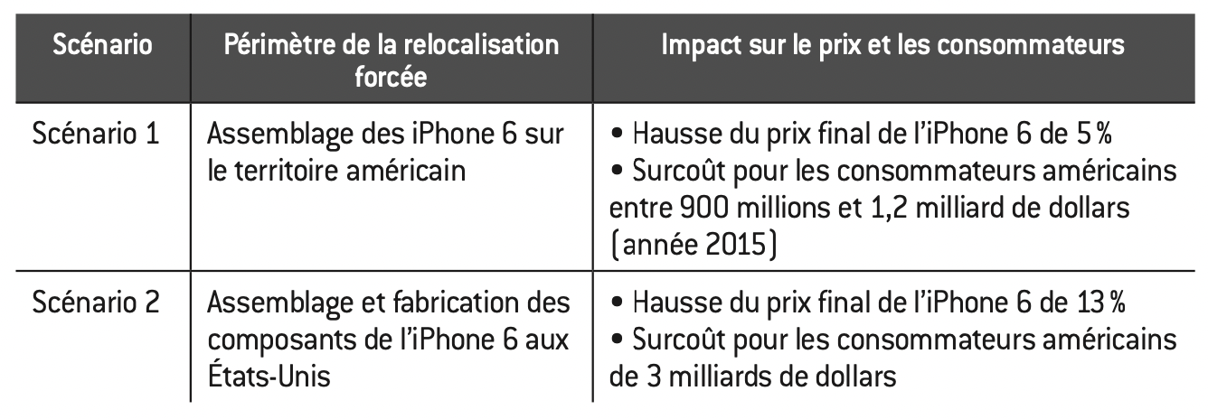 Impact de deux scénarios de relocalisation forcée de l’iPhone 6