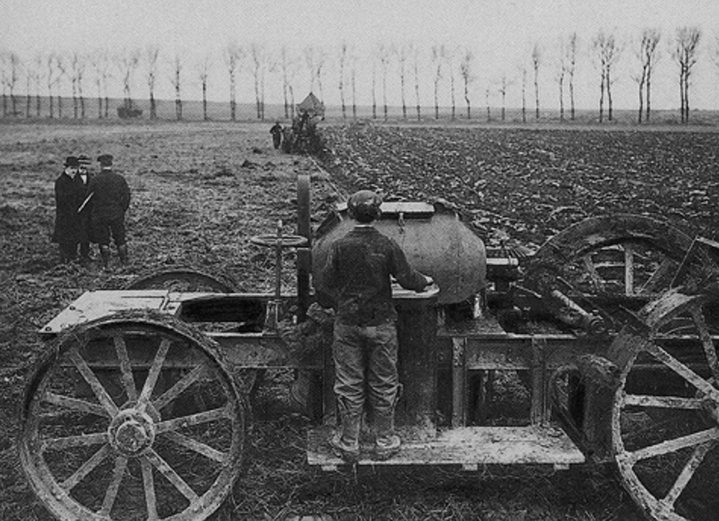 Labourage électrique pendant l’hiver 1914 dans le Soissonnais.