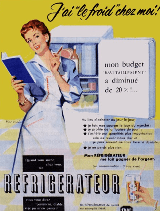 Publicité d’un réfrigérateur de 1955.