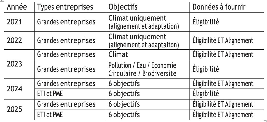 – le chiffre d’affaires : il s’agit de déterminer le pourcentage du chiffre d’affaires « éligible » puis « aligné », c’est-à-dire concernant des activités durables selon la taxonomie ;