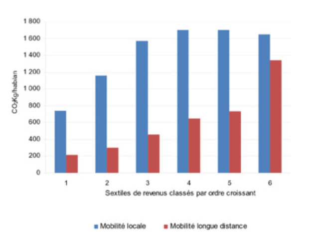 Graphique 10 : Emissions annuelles de CO2 liées aux déplacements des résidents selon le niveau de revenus des ménages par habitant