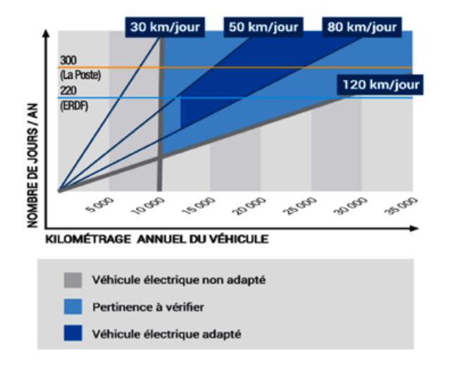 Graphique 2 : Zone de pertinence économique des véhicules électriques et thermique selon l’usage