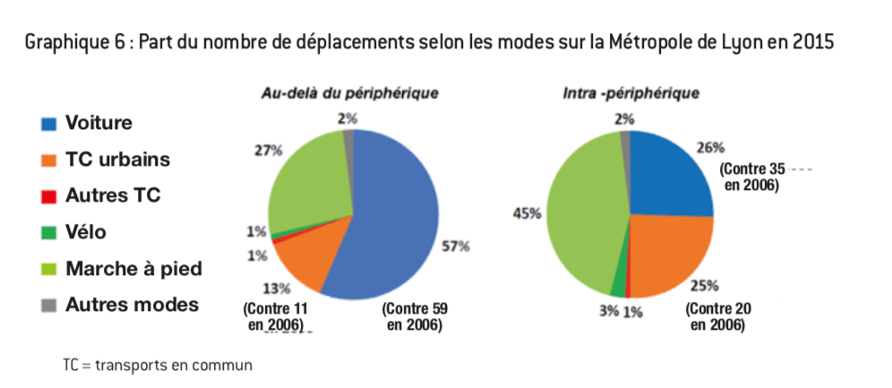 Graphique 6 : Part du nombre de déplacement selon les modes sur la Métropole de Lyon en 2015
