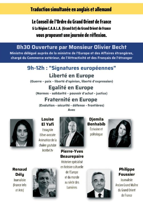 Le 6 novembre 2022, le Grand Orient de France à organisé un colloque public sur le thème « Europe(s), Frontière(s), Trajectoire(s) » dont la Fondation pour l'innovation politique était invitée.