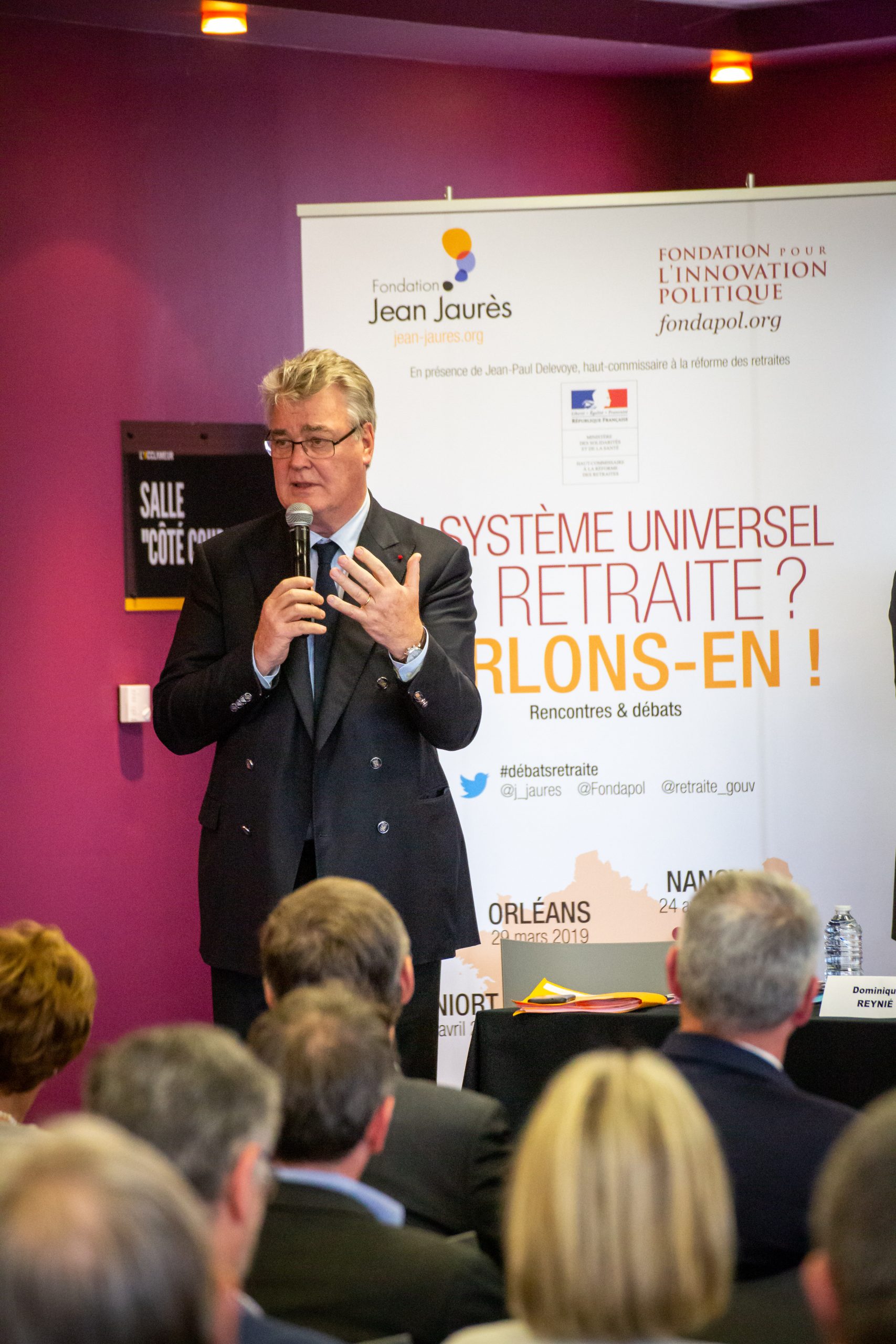 L’initiative «Un système universel de retraite ? Parlons-en», conjointe à la Fondation Jean-Jaurès et avec la participation du Haut-commissaire à la réforme des retraites, est un cycle de 4 rencontres-débats, organisées à Orléans le 29 mars, Niort le 5 avril, Montpellier le 9 avril et Nancy le 24 avril.
